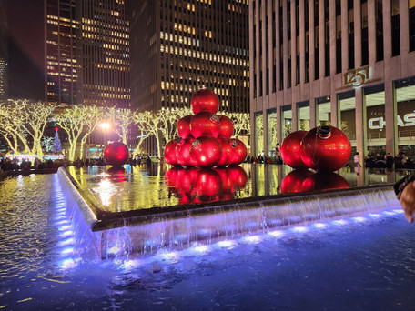 Once Greg finished work for the day, we grabbed some eats at Beatnic and then braved the chaos that is midtown to see the Christmas displays. Starting from the Lotte Palace hotel, we worked our way up 5th Ave to the Plaza hotel, back down to see the Rockefeller tree, down to the Winter Village at Bryant Park, and past the Macy's displays - and that was more than enough fighting through crowds for us.