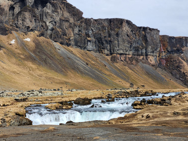 Day 3: Happy Birthday Chris! With beautiful sunny weather and bellies full of deliciousness from Almar Bakery, we set off for Vik. First stop Seljalandsfoss - a beautiful waterfall on the Ring Road. You can go behind this one later in the season, but there was still ice on the path so that part was closed. On this stop, you can see a couple of other waterfalls as well, including Gljúfrabúi that is partially hidden behind some rocks and you need to walk through to fully see it. Greg and Chris got thorougly drenched checking it out for us.